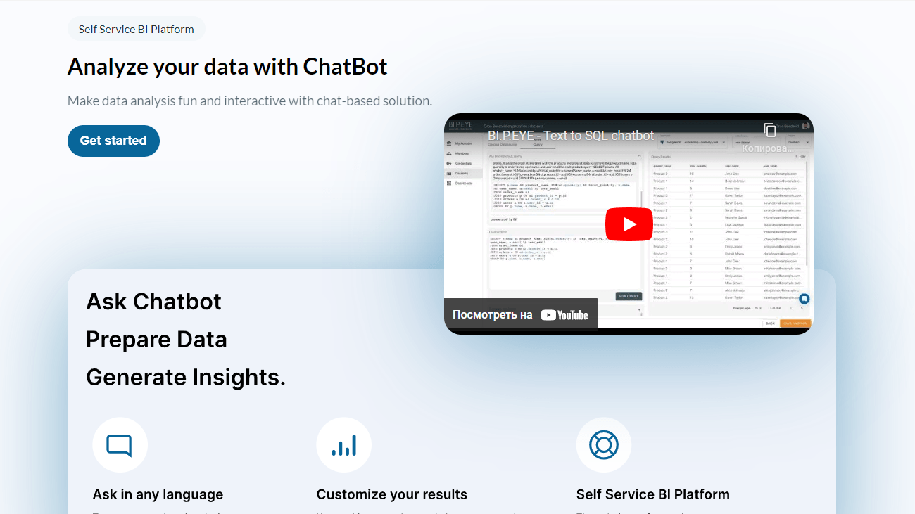 Благодаря продвинутому искусственному интеллекту, BI.P.EYE позволяет анализировать любой объем информации на любом языке (включая русский). Для работы не нужно знать специальных формул, как в Excel, все запросы задаются простым языком. Например, вы можете задать вопрос – общая сумма всех поставок товара “А”, и в ответ получите точные данные без необходимости ручной фильтрации или перепроверки. ИИ умеет работать, в том числе с неструктурированными данными, что выгодно отличает его от встроенных в Эксель функций.