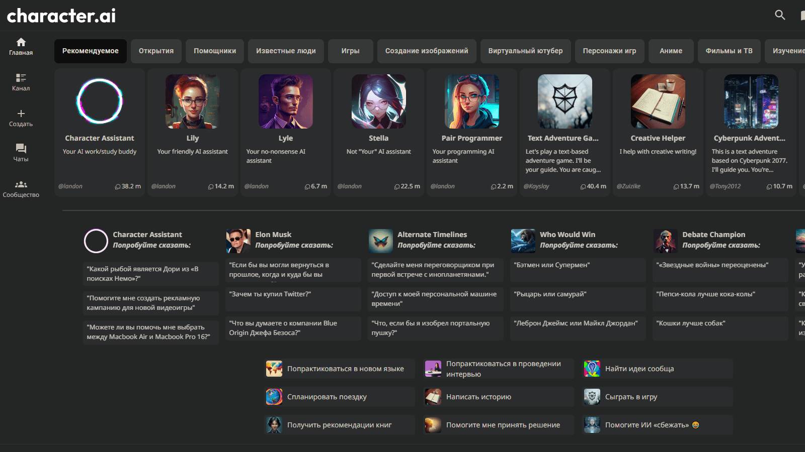 Вы можете бесплатно пользоваться Character AI на сайте, а также через приложение на iOS и Android. Для доступа к большему количеству персонажей и некоторым другим функциям требуется оплата. Character AI поддерживает русский и 10+ других языков.