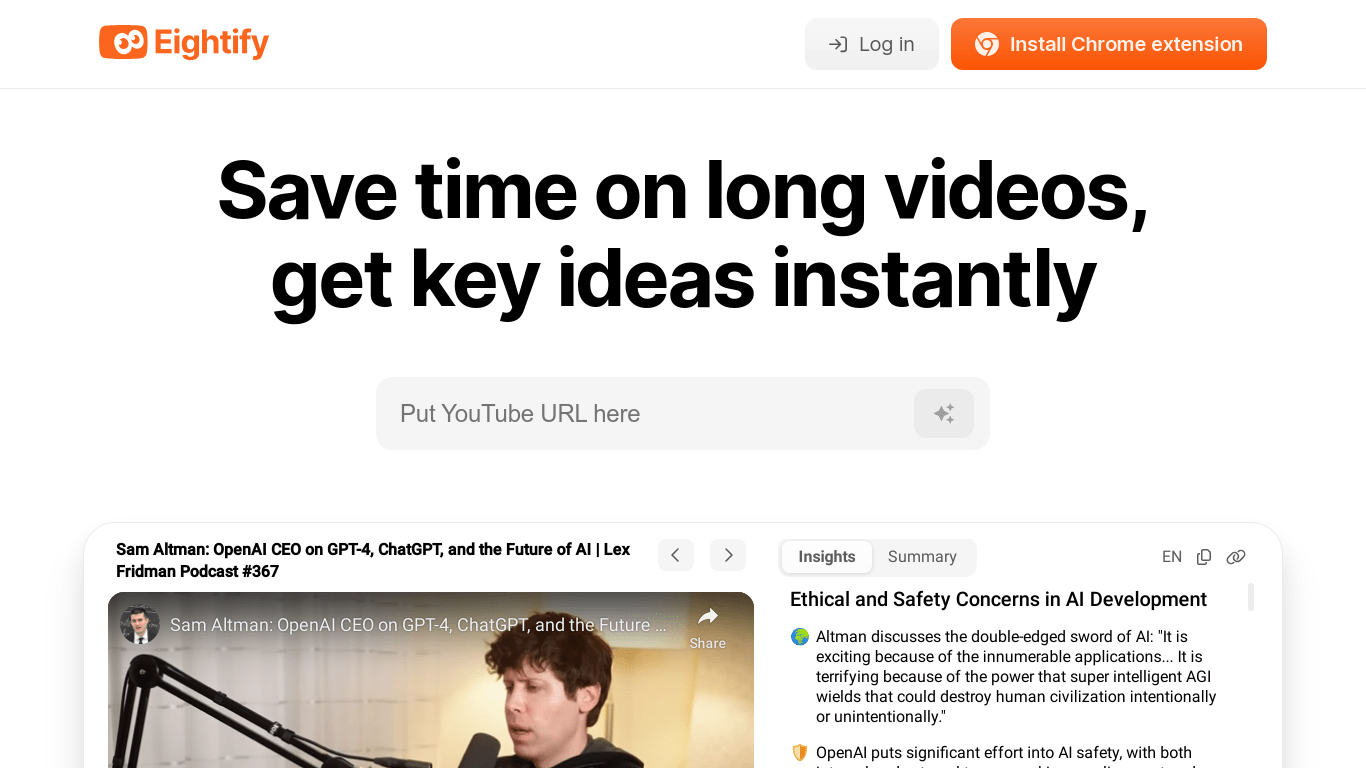 Эта нейросеть позволяет значительно экономить время на просмотре длинных видеороликов, получая из них ключевую информацию в виде короткой текстовой выдержки благодаря работе алгоритмов ИИ. Это позволяет быстро получать нужную и важную информацию, не тратя время и внимание на просмотр видео.