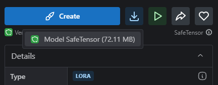 Число после двоеточия : указывает на уровень LoRa, обычно оно варьируется от 0 до 1, однако каждый показатель отличается, рекомендуется проверить желаемые настройки на веб-странице, с которой вы загрузили модель, слишком высокие значения могут испортить генерацию изображения. Чтобы начать использовать модель, кликните на кнопку «Create».
