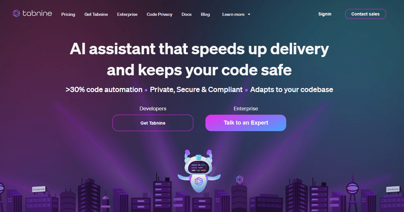 Tabnine – мощное решение для автоматизации написания кода, которое позволяет сэкономить до 30% времени разработчиков. Благодаря мощному искусственному интеллекту вы сможете отказаться от части рутинных задач, например, ручной компиляции кода, а также поручить часть написания кода искусственному интеллекту.